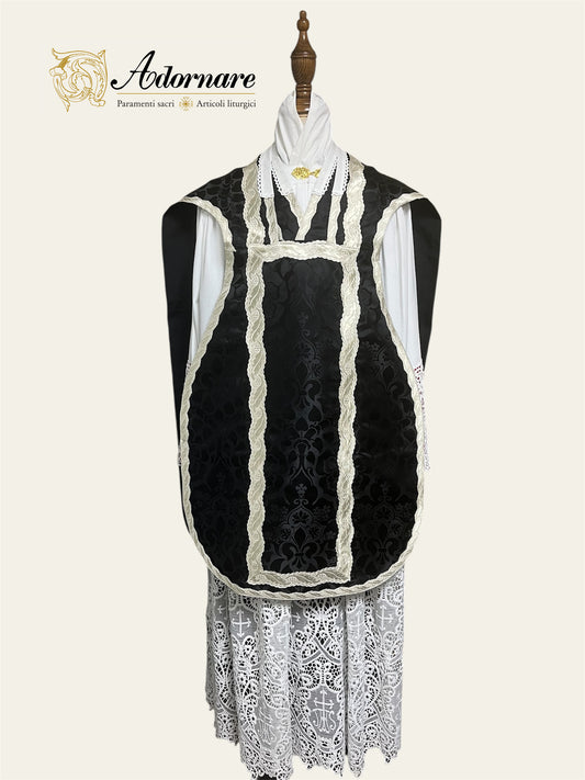 French Damask Roman Chasuble with brocade panels - Low Mass Set / Pianeta Francese Damasco con inserti in broccato