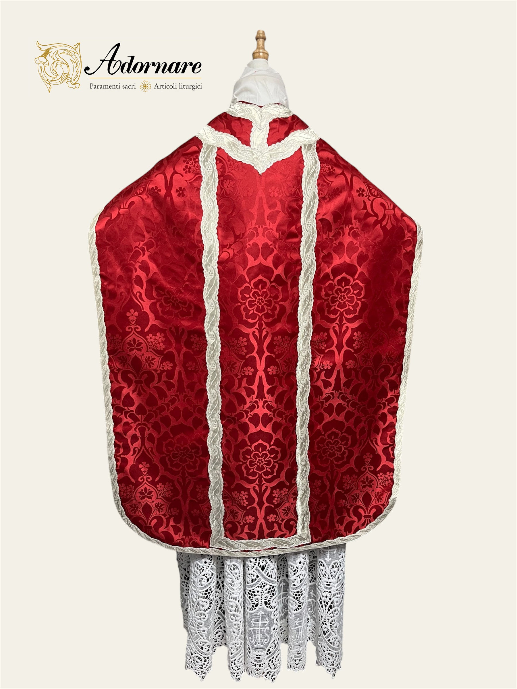 Damask Roman Chasuble with silver wavy gallons - Low Mass Set / Pianete Romane Damasco con gallone argento