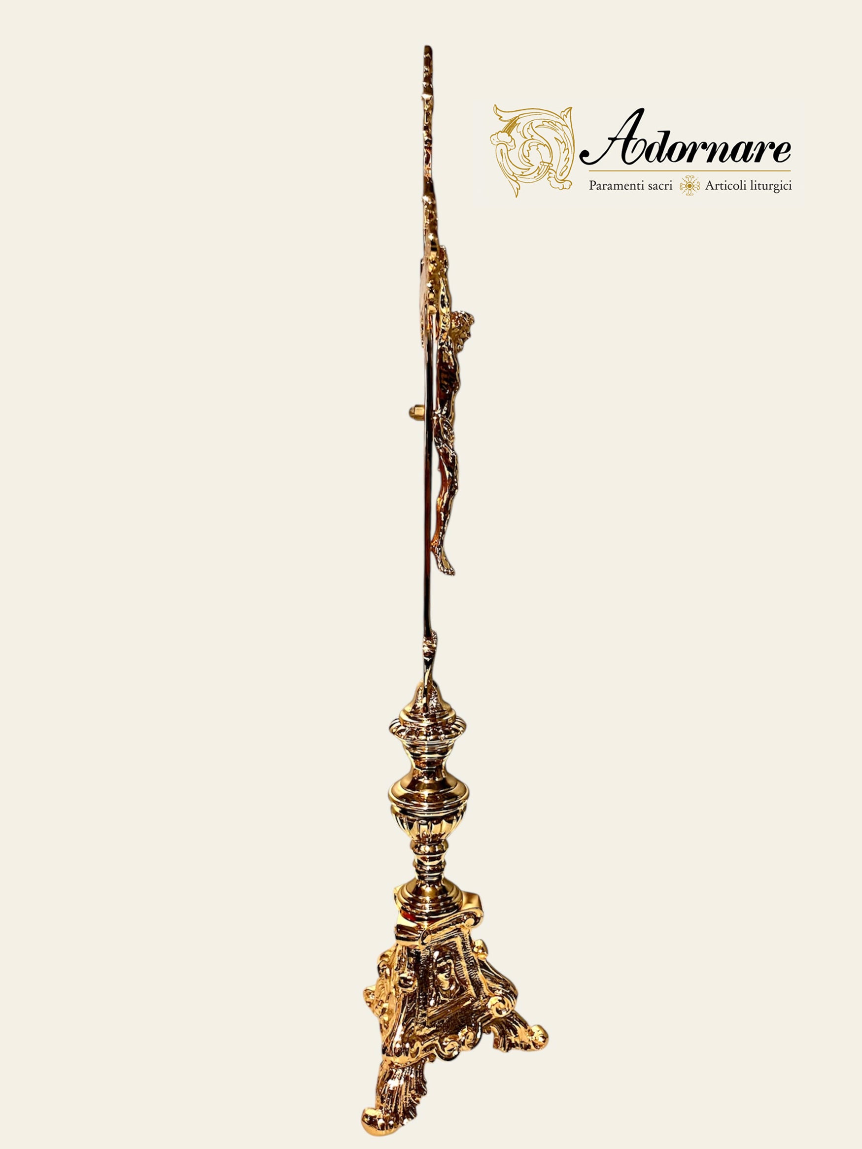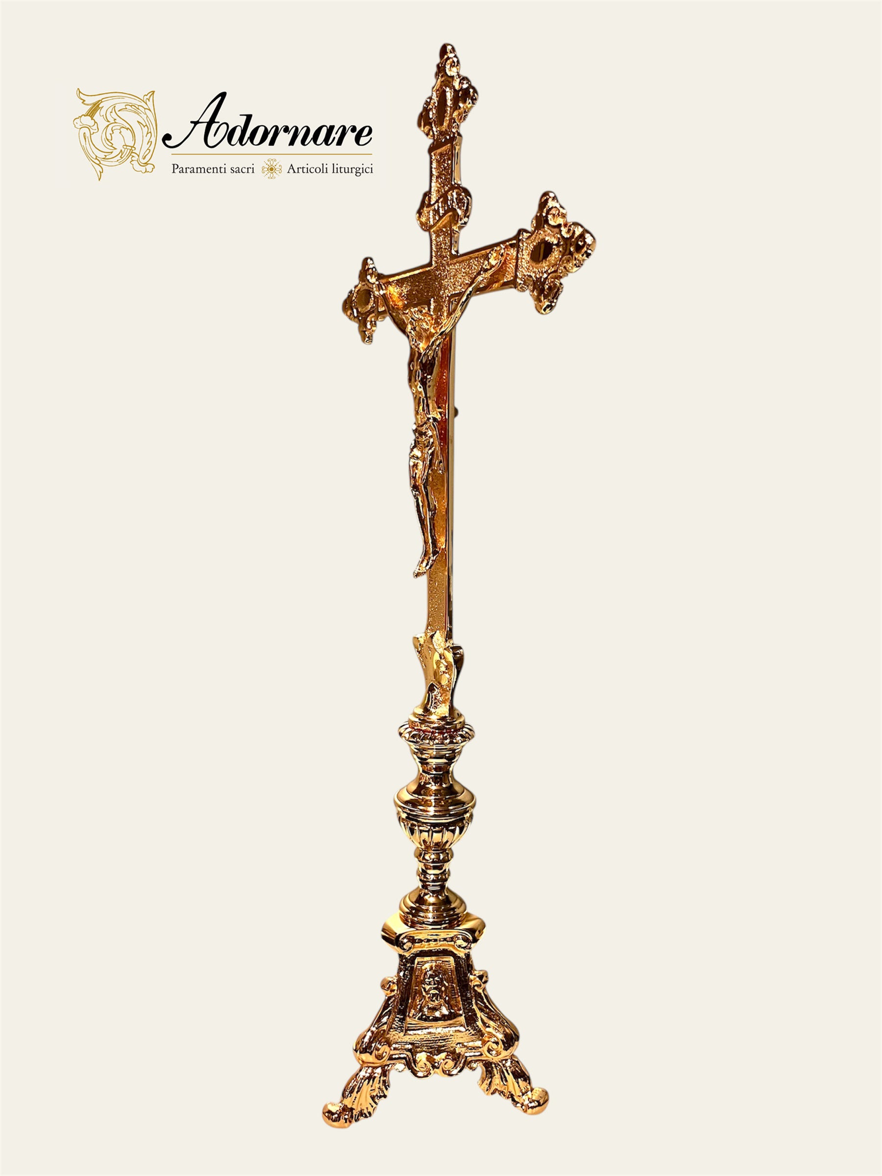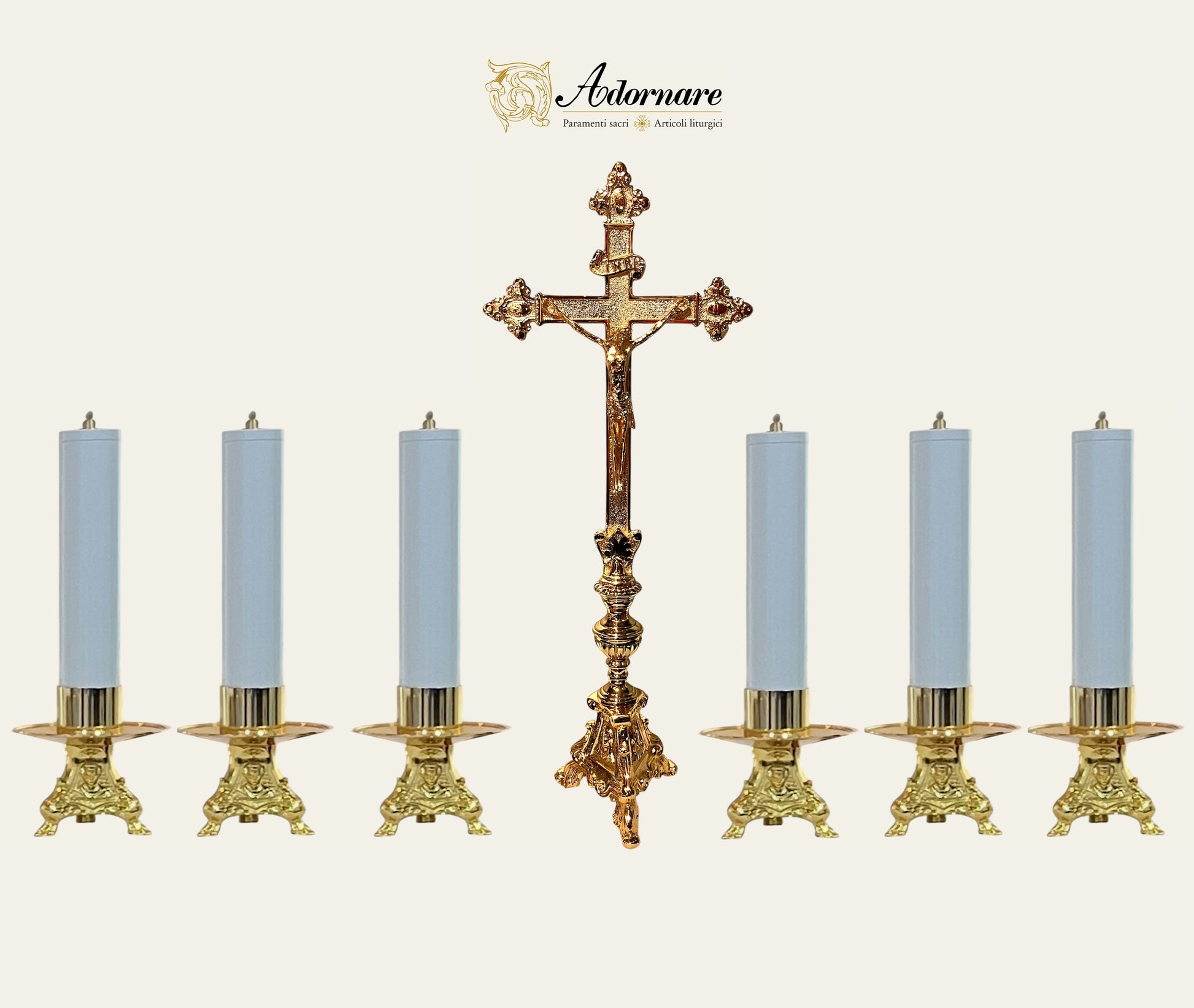 The crucifix and candlesticks are made of highly polished gold-plated brass.