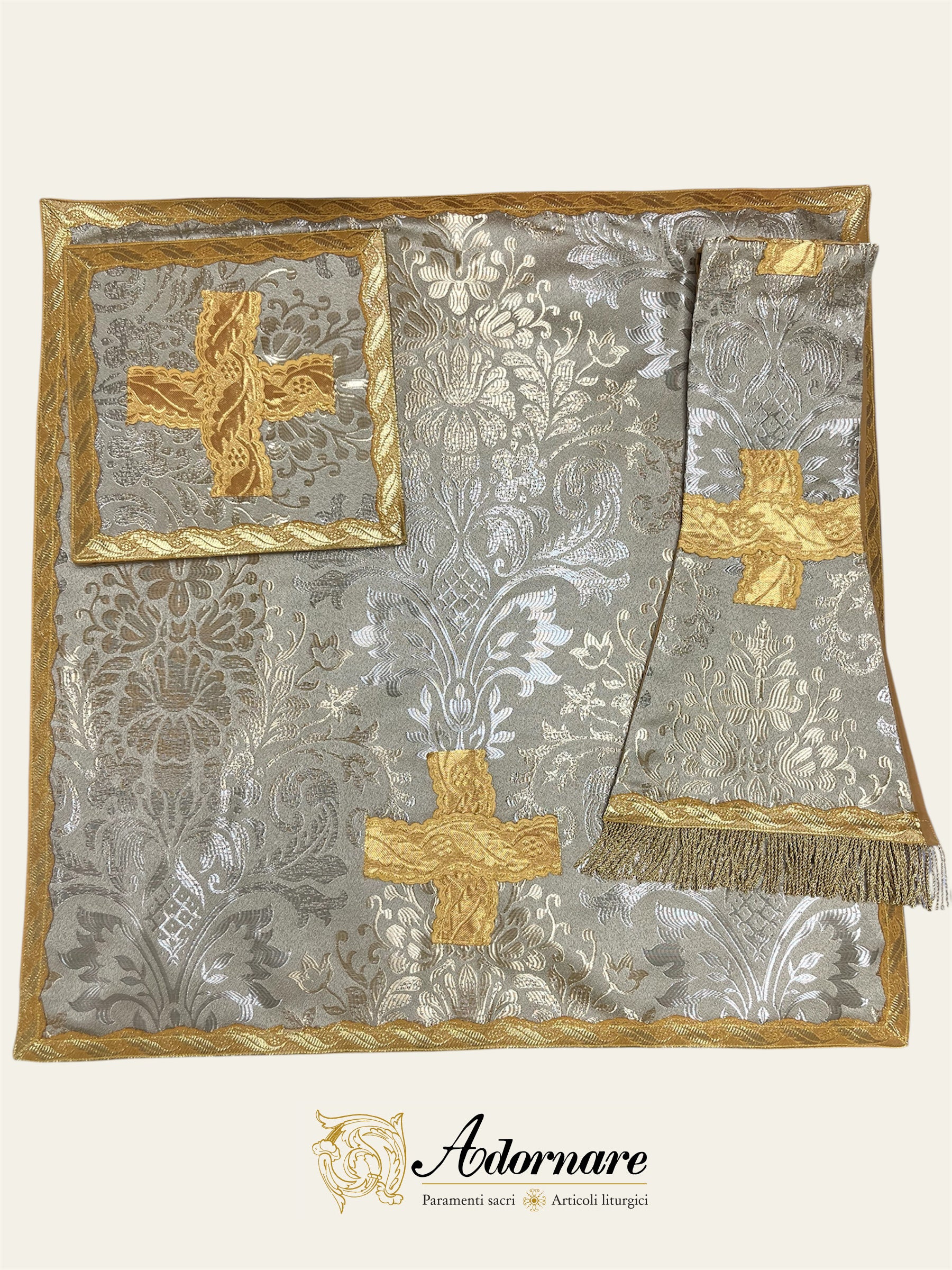 The Low Mass Set is completed with a Roman stole, maniple, chalice veil and burse.
