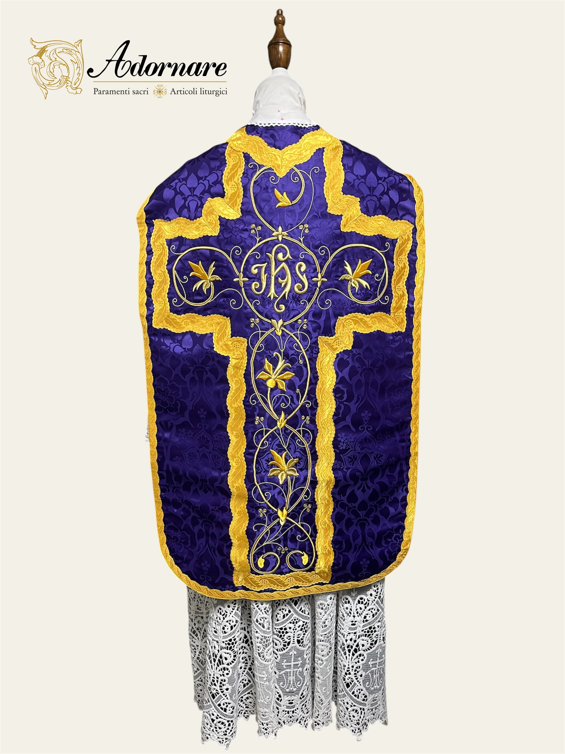 "IHS" Hand-embroidered French-cut Roman Chasuble Low Mass Set / Pianeta Francese "IHS"