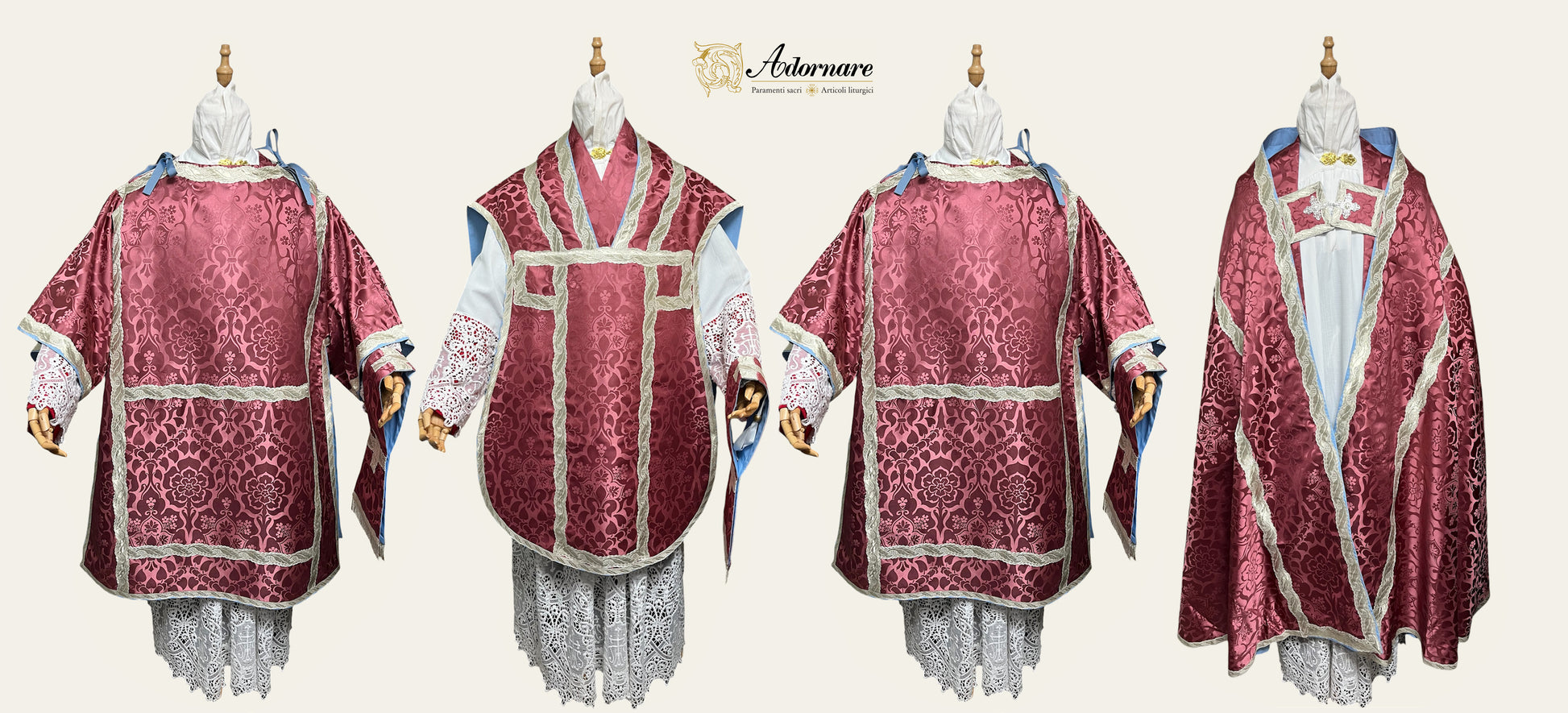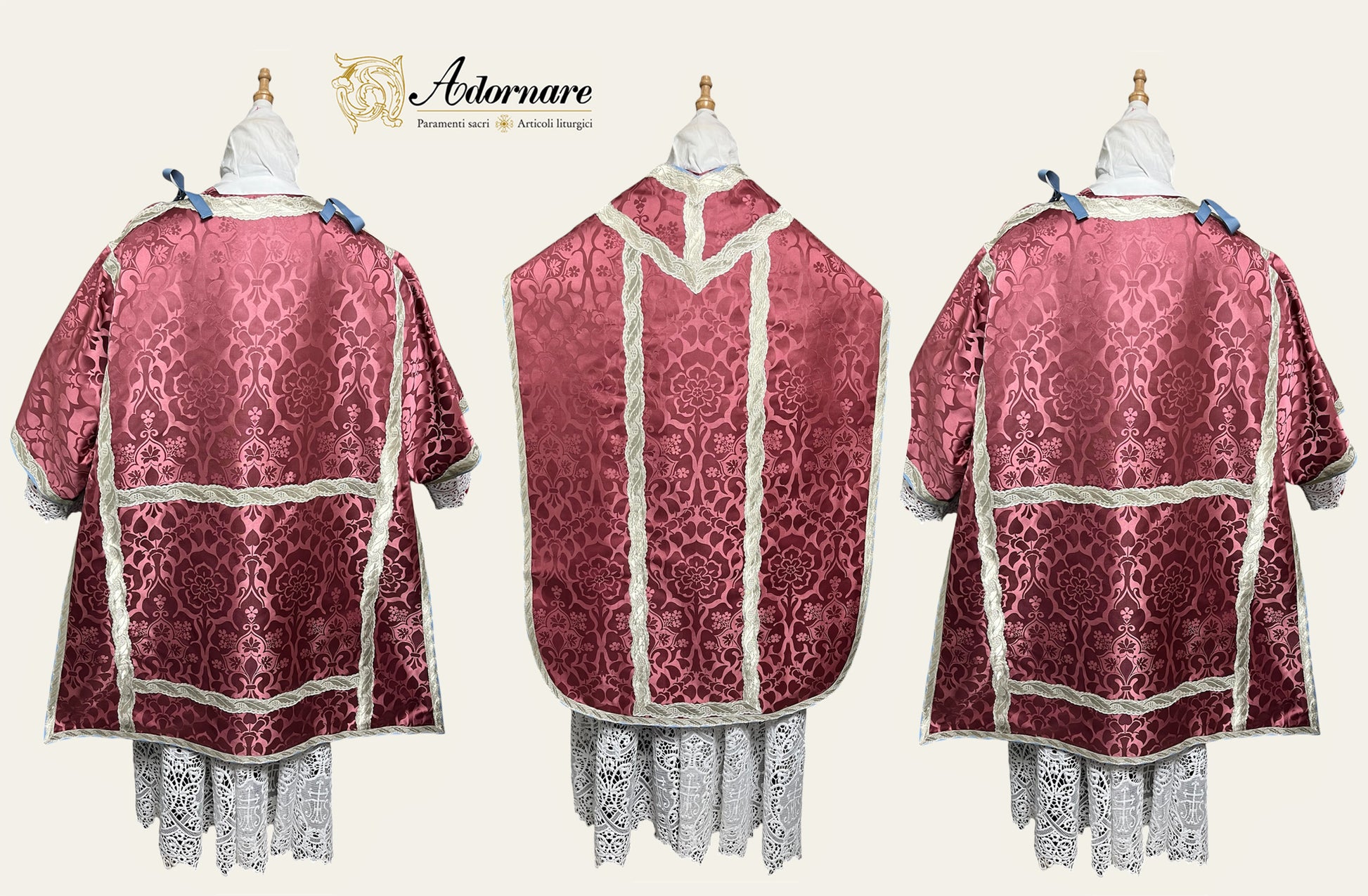 There is also the option to add a matching humeral veil with eucharistic embroidery and a matching roman cope.