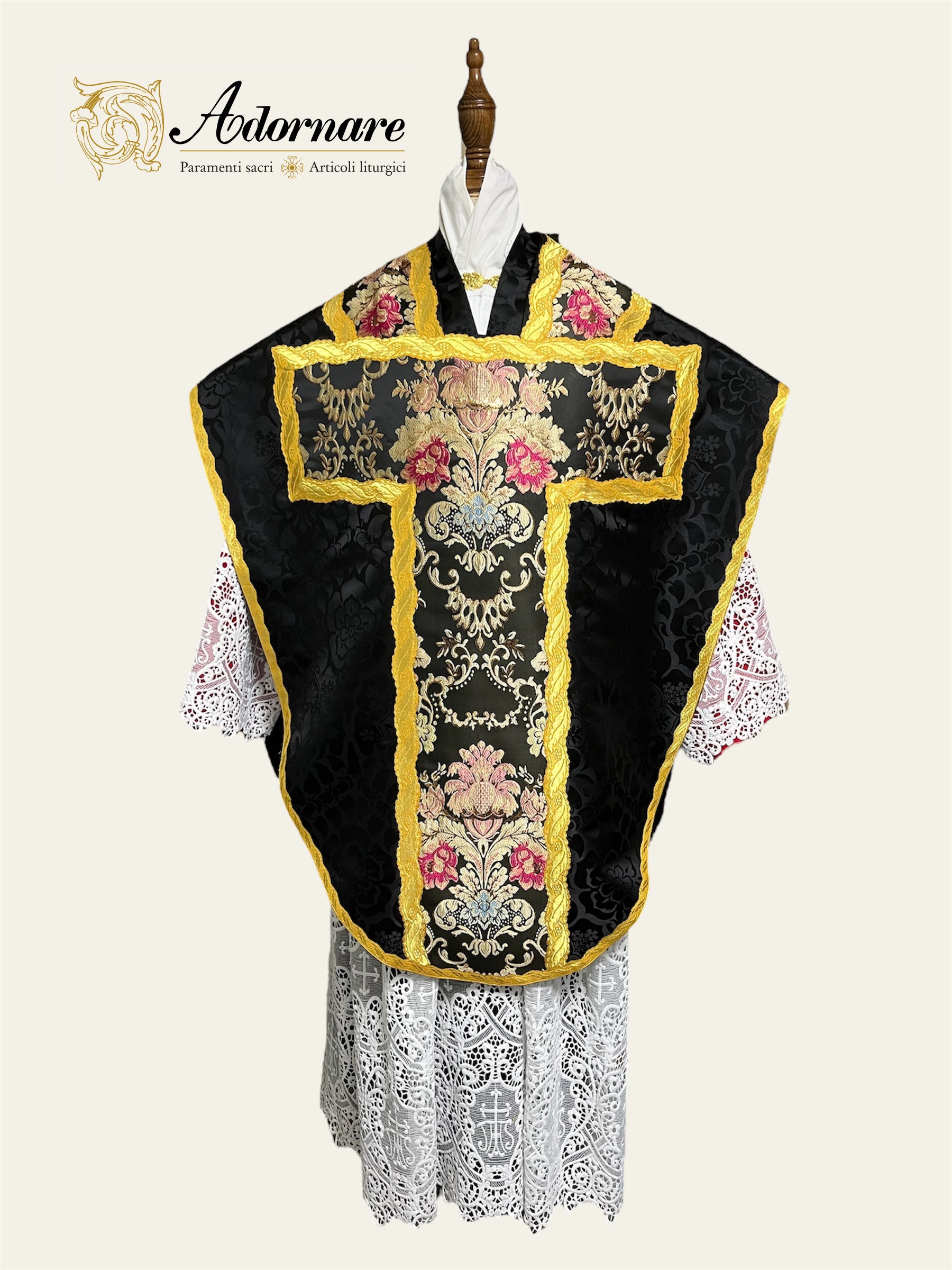 Requiem St Philip Neri Chasuble Low Mass Set (Black) / Pianeta San Filippo in Broccato (Nero)